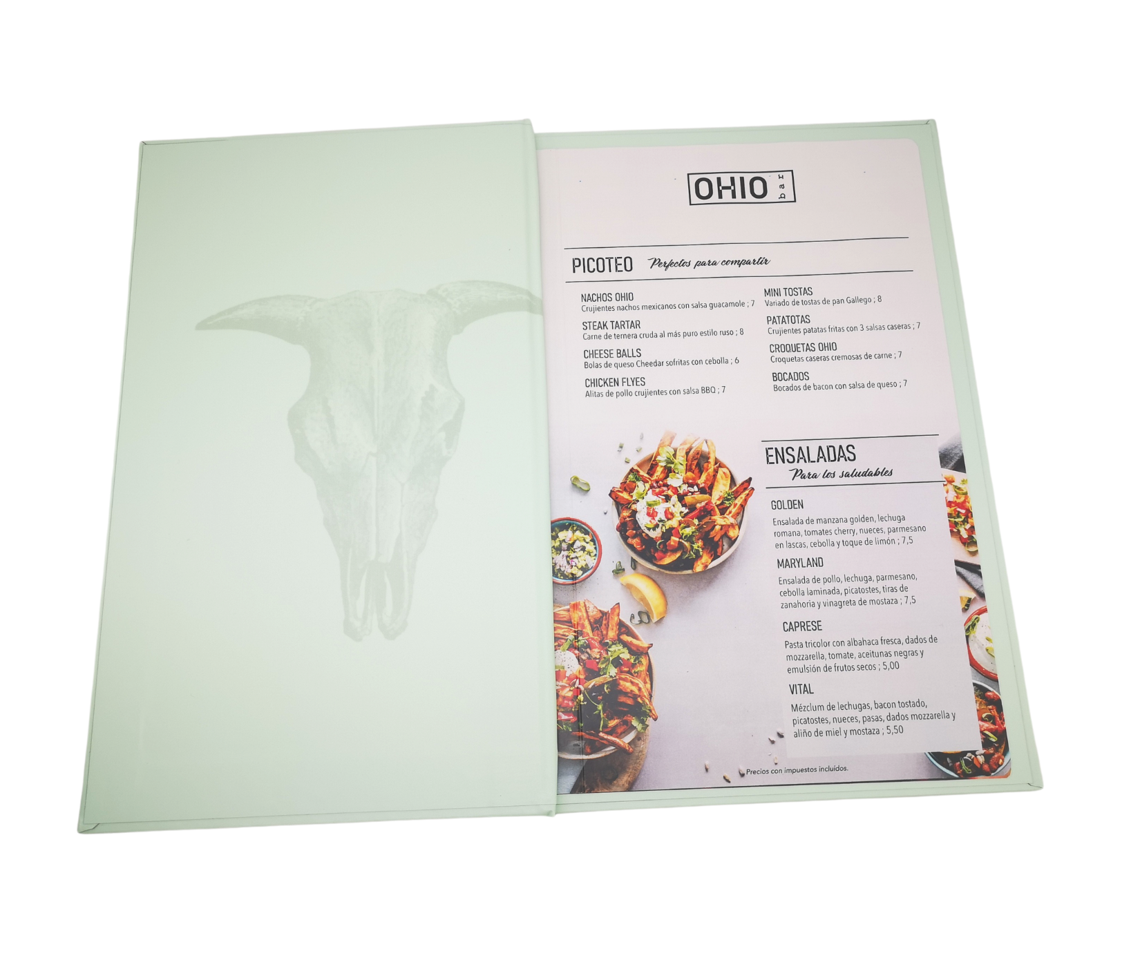 Cartas encuadernadas con tapa dura y tornillos. La encuadernación se realiza de forma artesanal. Es 100% personalizada y la sujeción de hojas se realiza con tornillos. Es nuestra carta más clásica y formal. Se pueden añadir fundas para cambiar las hojas fácilmente.